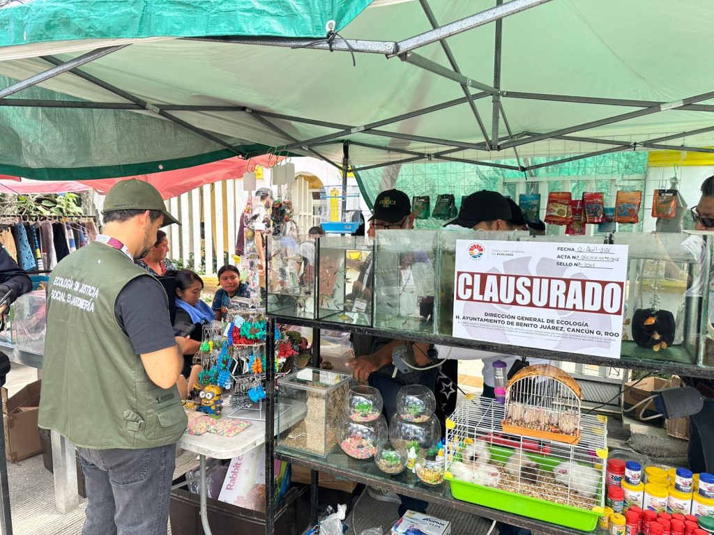 MásCancún.- El tianguis de la Región 101, considerado el más grande de Cancún, fue escenario este día de un amplio operativo que dejó como saldo varios animales asegurados, entre ellos algunos exóticos. De acuerdo con datos oficiales, el operativo fue